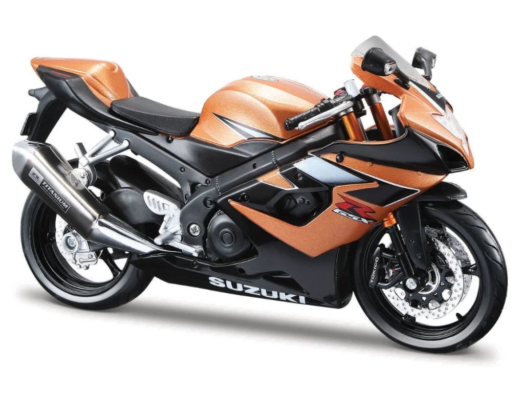 2006 Suzuki GSX-R1000. Modely motocyklů v měřítku 1:12 mají u svých fanoušků velkou oblíbenost pro jejich dokonalé provedení a především velikost cca. 16 cm. Motocykly mají otáčivá řidítka a odpruženou zadní nápravu. Baleno v krabičce. Nevhodné pro děti do 3 let. Věk: 3+