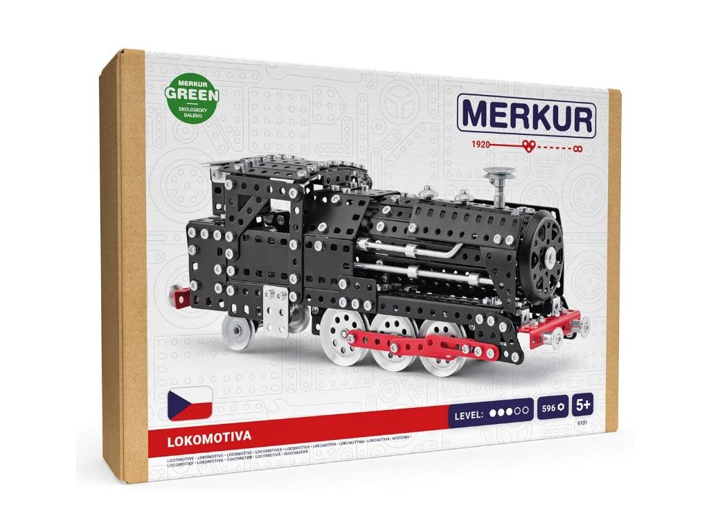 Kovový model v ikonické černé barvě s červenými prvky. Pohyblivá kola a spojnice. Kabina strojvedoucího, detaily parních trubek, komín, písty, přední reflektory, spřáhla..V balení najdete podrobný návod. Merkur díly jsou univerzální a tak vás neomezí v jakékoli modifikaci a nápadu. Stavebnici tak můžete sestavit podle přiloženého návodu nebo čistě podle svých představ. Se sestavenými modely si lze hrát, jsou velmi odolné. Podporuje a rozvíjí manuálních schopnosti, logické myšlení, soustředění. Rozměr balení: 33x22,5x5,5 cm. Počet dílků: 596 ks. Věk: 8+