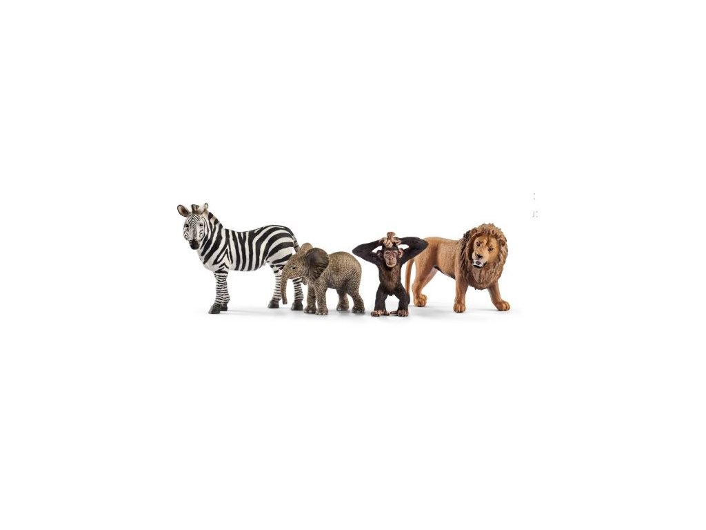 Se startovací sadou Wild Life objevují děti divoká zvířata. Přírodně realistická zvířata Schleich láskyplně vymodelovaná s věrnými detaily vybízí ke kreativní hře dětí. Tak vznikají první dobrodružné příběhy ze safari. Trvá pět let, než se hříva lvího samce plně vyvine. Obsahuje: 1 x lev, 1 x zebra, 1 x mládě afrického slona, 1 x mládě šimpanze. Rozměr balení: 24,5 x 19 x 8,2 cm. Nevhodné pro děti do 3 let. Doporučený věk: 3-8