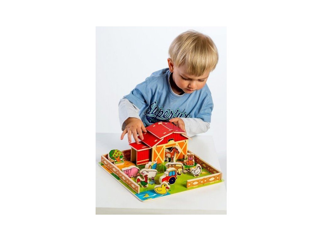 Dřevěná farma s podložkou je určena pro holčičky a kluky od 3 let.