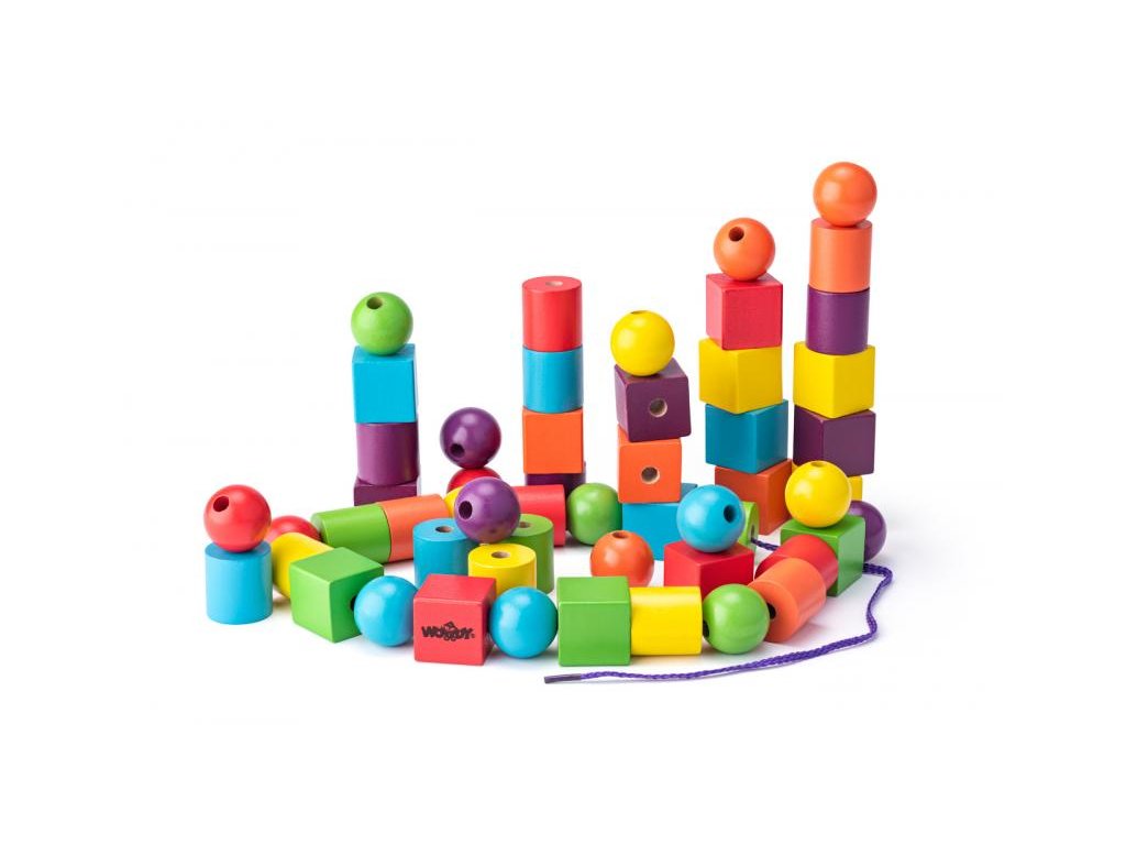 Věk: 3+ | Počet kusů: 60 | | Navlékací korále pomáhají dětem se učit přesnosti, trpělivosti, rozvíjí jemnou motoriku, koordinaci pohybu a fantazii. Navlékání je oblíbenou dětskou činností a proto je po těchto hrách stále poptávka. Set obsahuje dřevěné korále, které jsou velikostí uzpůsobeny zručnosti malých dětí. V balení jsou 2 navlékací šňůrky. Rozměr korálků: 3cm