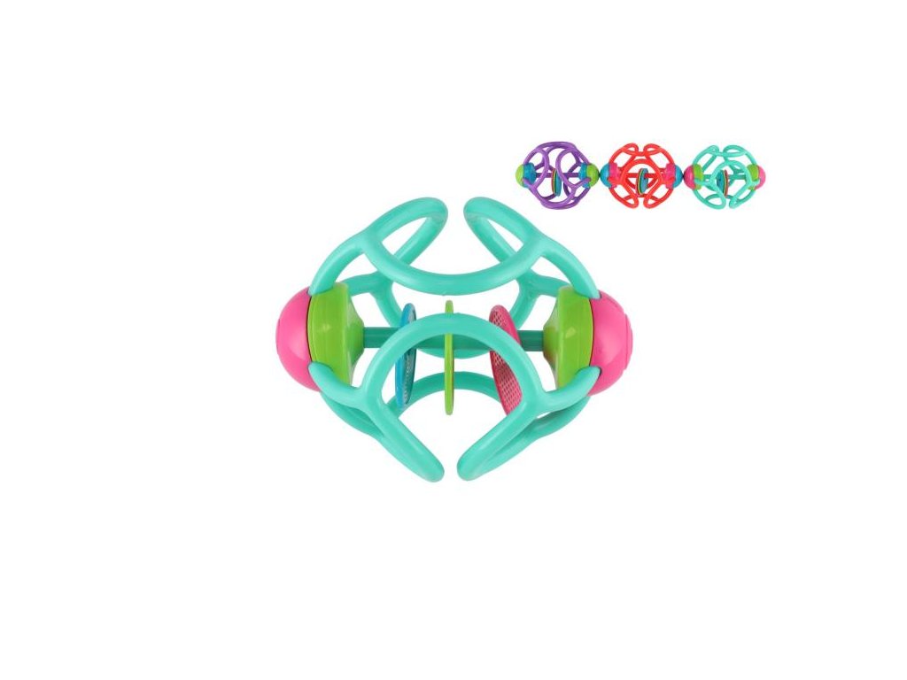 Lehoučké a barevné chrastítko ve tvaru míčku, které zároveň slouží i jako kousátko. Díky otevřené konstrukci se snadno drží i nejmenším ručkám. Při pohybu jemně chrastí a podporuje smyslový vývoj dítěte. Dostupné ve 3 veselých barvách, baleno na kartě v sáčku. Velikost: cca 12 cm Vhodné pro děti od 0 měsíců