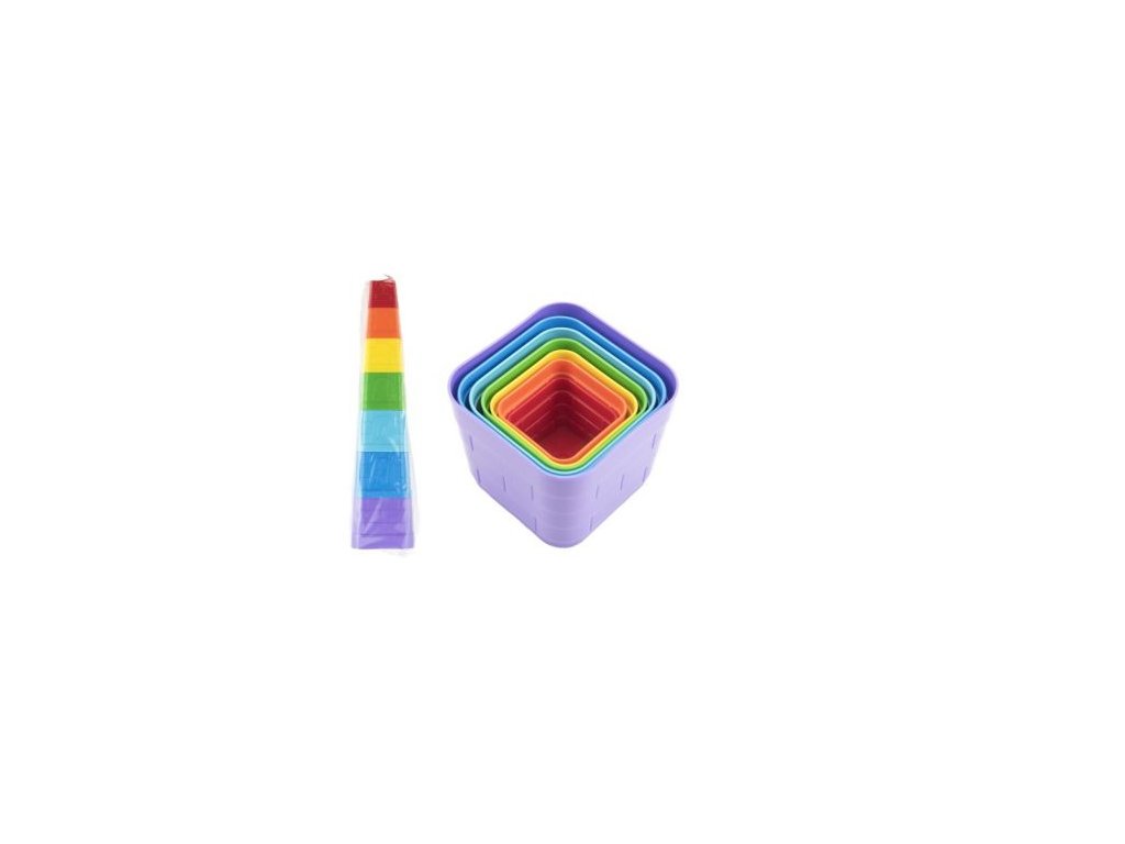 Kubus pyramida skládanka plast kulatá/hranatá barevná 7ks v sáčku 12m+