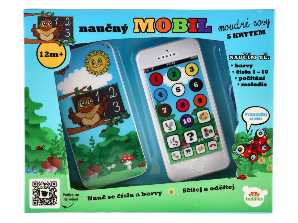Dotykový mobil, se kterým se děti naučí barvy, čísla, sčítání a odčítání. Dále mohou poslouchat melodie známých českých písniček a numerickou klávesnici použít jako piánko. Na mobilu jsou tlačítka se zvukem vyzvánění, ukončení hovoru a příchozí zprávy. Je šetrný ke sluchu dětí, rozvíjí slovní zásobu, představivost a logické myšlení. Zdokonaluje jemnou motoriku, rozvíjí zrak a sluch aktivním zapojením do hry. Součástí je atraktivní kryt s motivem Moudré sovy. Baterie 3x AG13 jsou součástí výrobku.