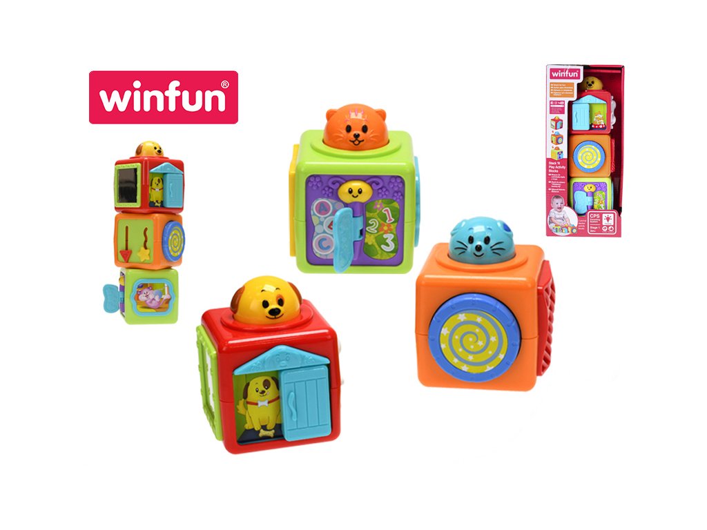 Pyramida kostky 7x7cm zvířátka s posuvnými okýnky 3m+ v krabičce