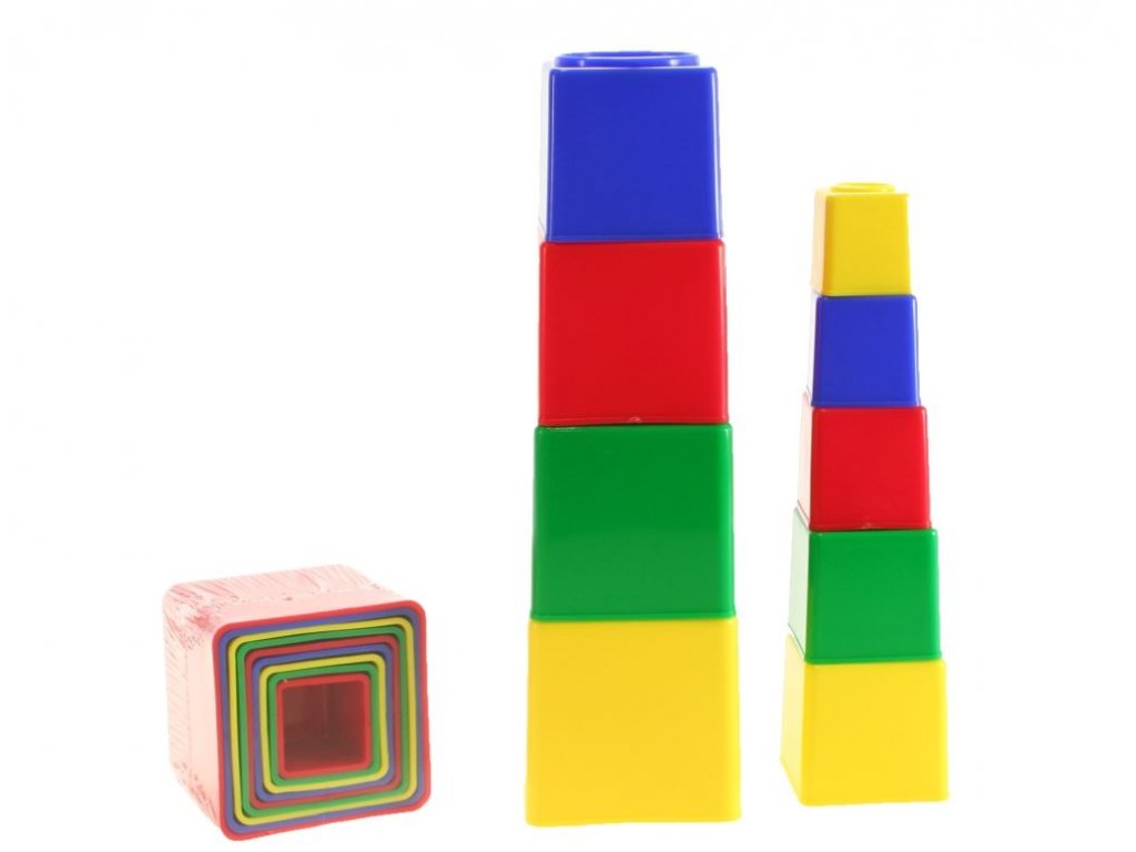 Pyramida kostky sládací. Celkem 9 kostek, které na sebe lze naskládat, materiál plast. Věk 1+.