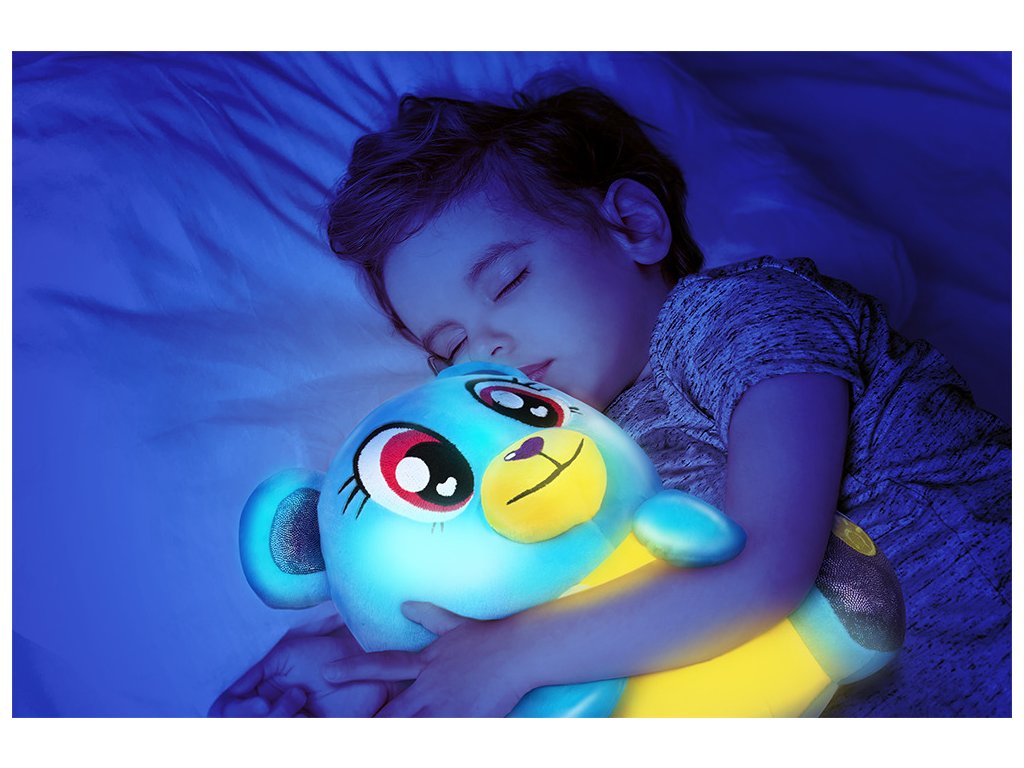 Plyšové zvířátko Lumiluvs- medvěd a zajíc. Po zmáčknutí tlapičky, plyšák svítí. Hračka je vhodná pro děti od 18 měsíců. Výrobek vyžaduje 3× AAA baterie (které jsou součástí balení).
