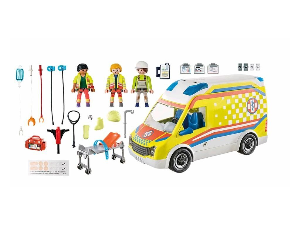 - Postavy: 1 zdravotník, 1 muž záchranář, 1 zraněná osoba; příslušenství: 1 sanitka se světelným a zvukovým modulem, 1 nosítka pro transport pacienta, 1 infuzní vak s infuzní hadičkou, 1 defibrilátor, 1 složka na dokumentaci, 3 diagnostické tabulky, 3 dlahové obvazy, 1 stavební helma, 1 vzduchové kladivo, 1 obvaz hlavy, 2 sádrové obvazy, 1 štítek s obvazovým materiálem, 1 náramkové hodinky, 1 stetoskop