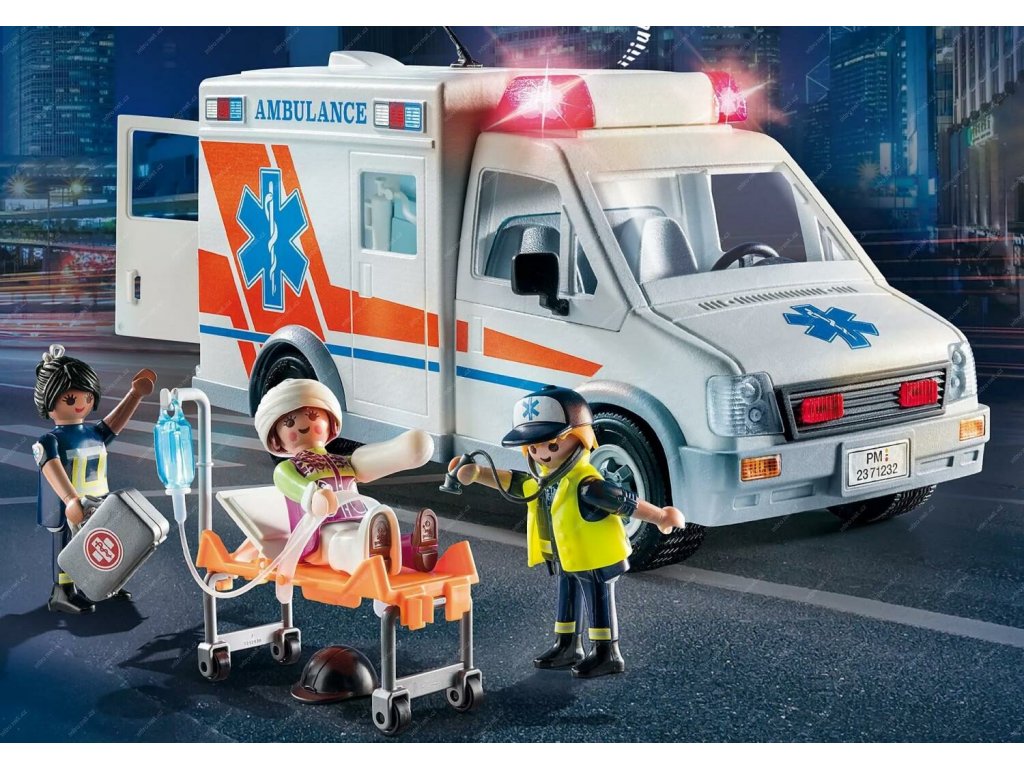Popadněte svůj stetoskop a vydejte se na pomoc s všestrannou sanitkou od PLAYMOBIL. Tato úžasná sada obsahuje sanitku se zvuky sirén a otevírací zadní dveře s prostorem pro nosítka. Snadný přístup do interiéru sanitky díky odnímatelným střechám. Vozidlo má různé přihrádky pro uložení veškerého potřebného lékařského vybavení. Obsahuje 3 figurky PLAYMOBIL: ženu a sanitáře a ženu. Mezi doplňky patří nosítka, infuzní stojan, kyslíkový přístroj, operační nástroje, stetoskop, náplasti, obvaz hlavy a lékárnička.