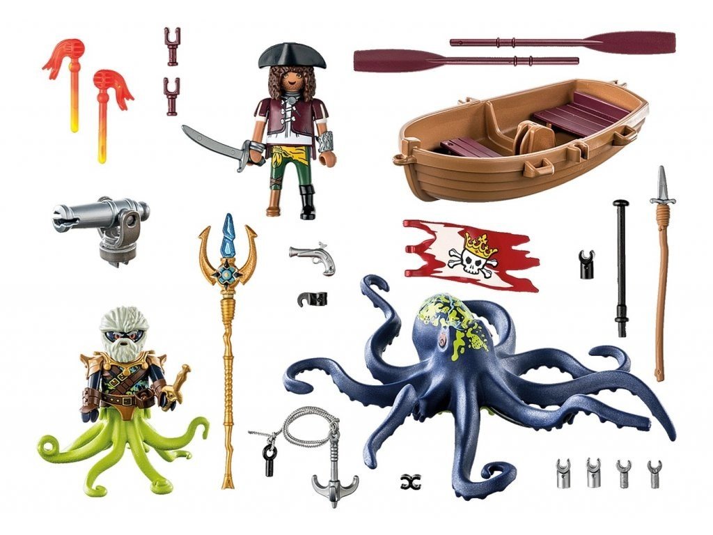 - příslušenství: 1 veslařský člun, 2 pádla, 1 dělo, 2 střely, 1 vlajka se stožárem, 1 kotva s lanem, 1 kopí, 1 trojzubec, 1 dýka, 1 meč, 1 pistole, 1 pirátský klobouk