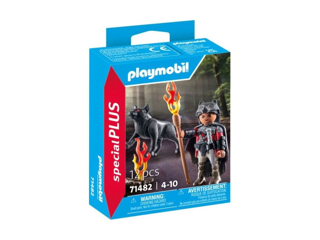 Sada PLAYMOBIL Special Plus Bojovník s vlkem obsahuje figurku PLAYMOBIL s vlčím kloboukem a pláštěnkou a také vlka s pohyblivou hlavou a nohama.