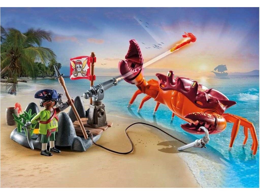 Pirát bojuje s obřím krabem pomocí svého odpalovacího zařízení ale chytne korzára svými obrovskými kleštěmi a hodí ho do moře. Kdo vyhraje bitvu?