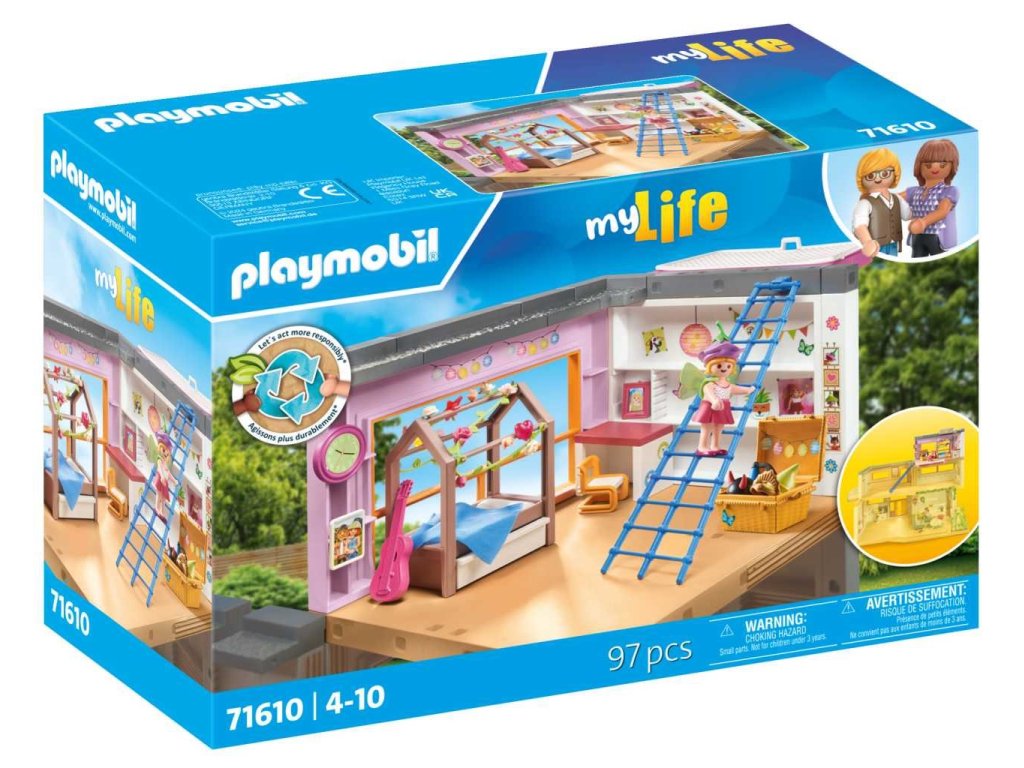 Detailně propracované rozšíření dětského pokoje z udržitelného materiálu s figurkou PLAYMOBIL a mnoha skvělými doplňky.