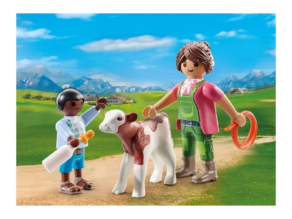 Figurky Playmobil 71803 DuoPack Farmářka s dítětem a telátkem: Klíčové přednosti figurek Playmobil 71803 DuoPack Farmářka s dítětem a telátkem figurky Playmobil jsou ideální k vystavení nebo si s nimi mohou děti celé hodiny hrát Jsou vhodné pro děti od 4 let Materiálem je plast Figurky Playmobil se zalíbí milovníkům zvířátek S figurkami vymyslí děti mnoho originální zábavy Ke hraní děti vybízí pohyblivé hlavy a končetiny V sadě najdete 3 figurky