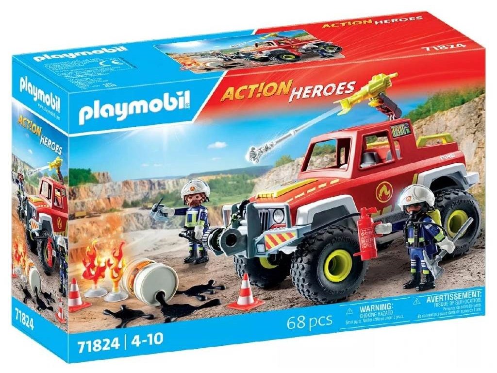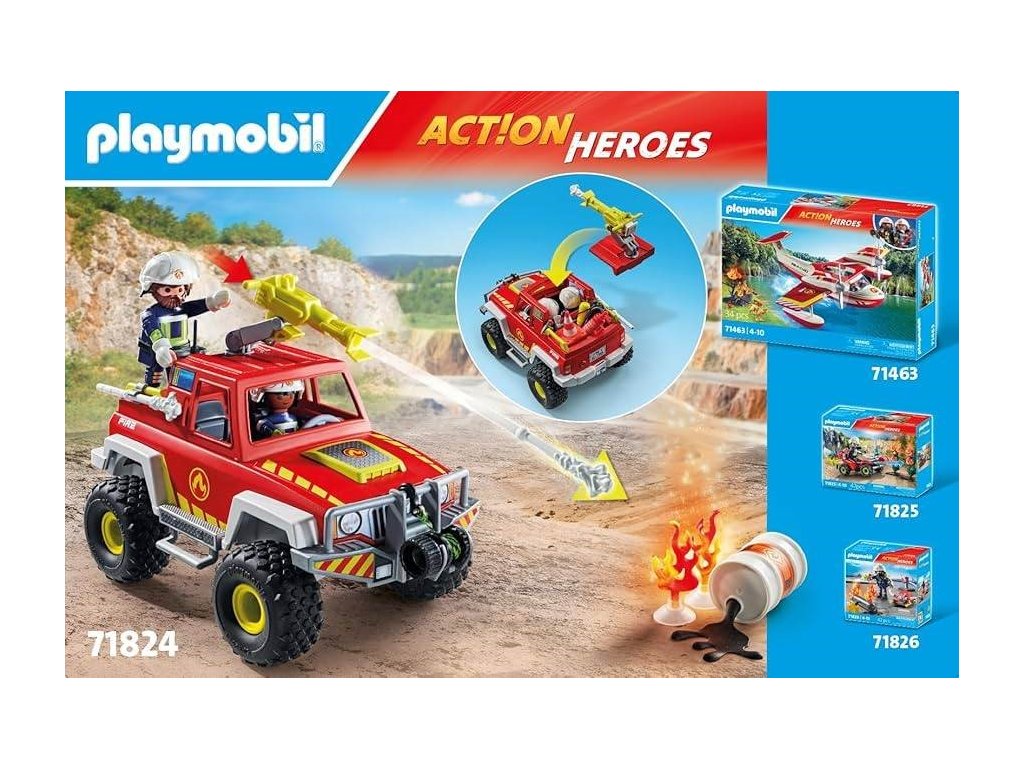 V akci s terénním hasičským motorem PLAYMOBIL! Závod o záchranu s tímto robustním hasičským motorem postaveným pro obtížné mise. Odnímatelná střecha umožňuje umístit dovnitř dva hasiče, zatímco olejové skvrny a plameny vytvářejí dramatické herní scény. Odklápěcí hledí přilby, odnímatelné příslušenství a odnímatelné víko olejničky nabízí nekonečné možnosti pro kreativní příběhy.