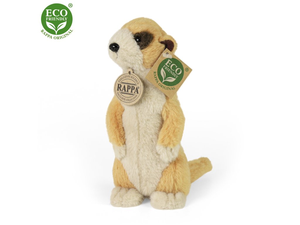 Roztomilá plyšová surikata ve velikosti 18 cm je vyrobena z vysoce kvalitní plyše a je tak součástí exkluzivní kolekce plyšových hraček RAPPA. Co to vlastně ECO-FRIENDLY znamená? Výplň plyšové hračky je vyrobena z recyklovaných PET lahví. Tento materiál je zcela bezpečný, na omak nerozeznatelný od standartní výplně a plně atestovaný pro bezpečnost i těch nejmenších. Rozhodli jsme se jít zelenou cestou co nejméně zatěžující životní prostředí- cestou ECO-FRIENDLY.