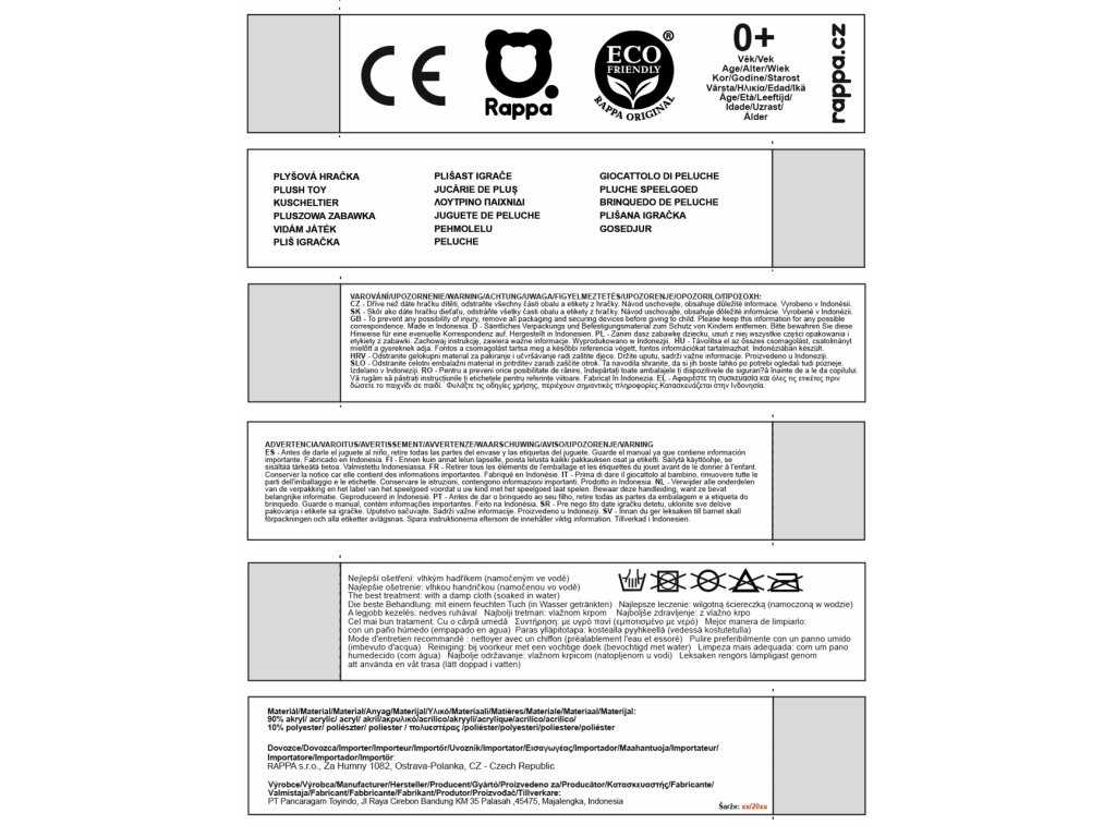 Plyšový chameleon měří 30 cm a díky těm nejkvalitnějším materiálům se řadí do Exkluzivní kolekce plyšových hraček značky Rappa. Díky ručnímu zpracování každého kusu navíc vypadá jako živý. Proč označení ECO-FRIENDLY? Rappa si je vědoma všech dopadů na životního prostředí, zaměřuje se na udržitelnost a omezení používání plastů na minimum. Proto je výplň hraček vyrobena z recyklovaných materiálů, zejména PET lahví. Ta je však zcela nezávadná a vhodná i pro děti od narození. FUN FACT: Věděli jste, že chameleoni mění barvu nejen pro maskování, ale hlavně kvůli komunikaci, regulaci teploty a díky speciálním nanokrystalům v kůži, které odrážejí různé vlnové délky světla?