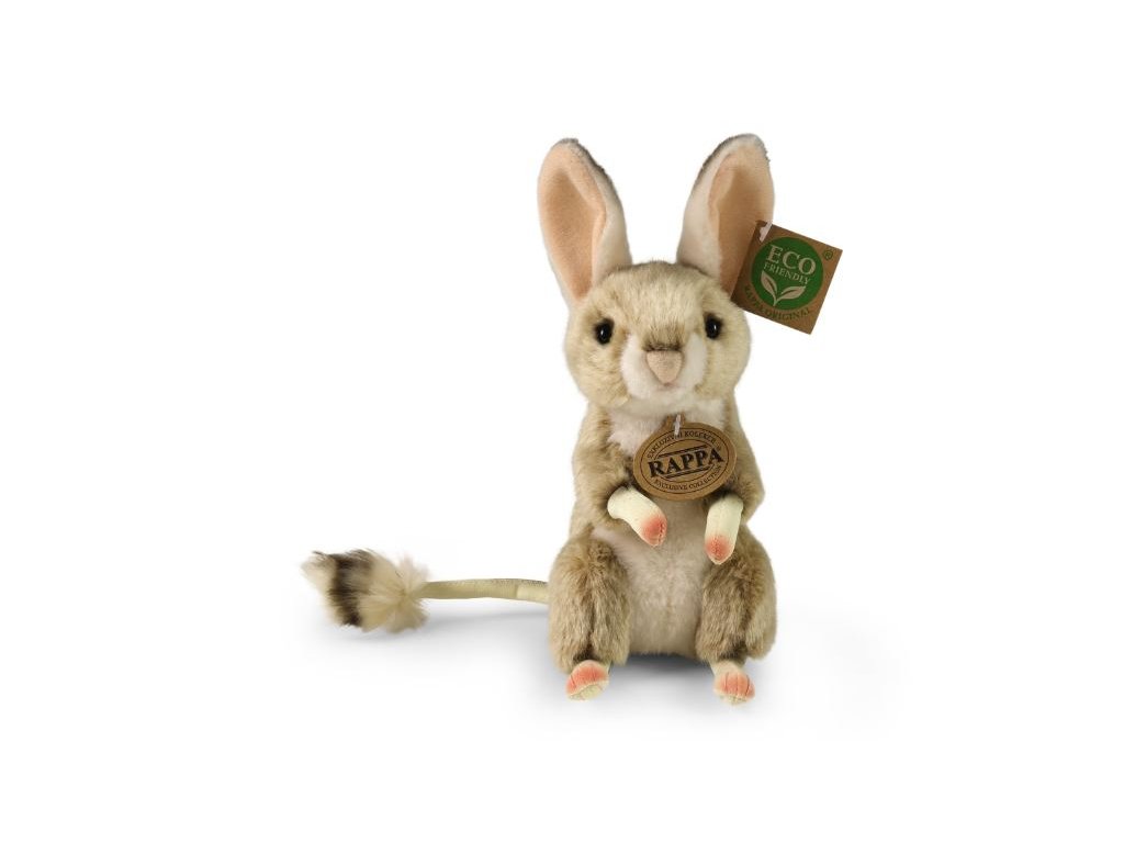 Plyšový hlodavec tarbík měří 16 cm a díky těm nejkvalitnějším materiálům se řadí do Exkluzivní kolekce plyšových hraček značky Rappa. Díky ručnímu zpracování každého kusu navíc vypadá jako živý. Proč označení ECO-FRIENDLY? Rappa si je vědoma všech dopadů na životního prostředí, zaměřuje se na udržitelnost a omezení používání plastů na minimum. Proto je výplň hraček vyrobena z recyklovaných materiálů, zejména PET lahví. Ta je však zcela nezávadná a vhodná i pro děti od narození. FUN FACT: Věděli jste, že tarbíci jsou experty na skákání a díky svým výrazně prodlouženým zadním nohám dokážou skákat až 3 metry na jedno odražení?