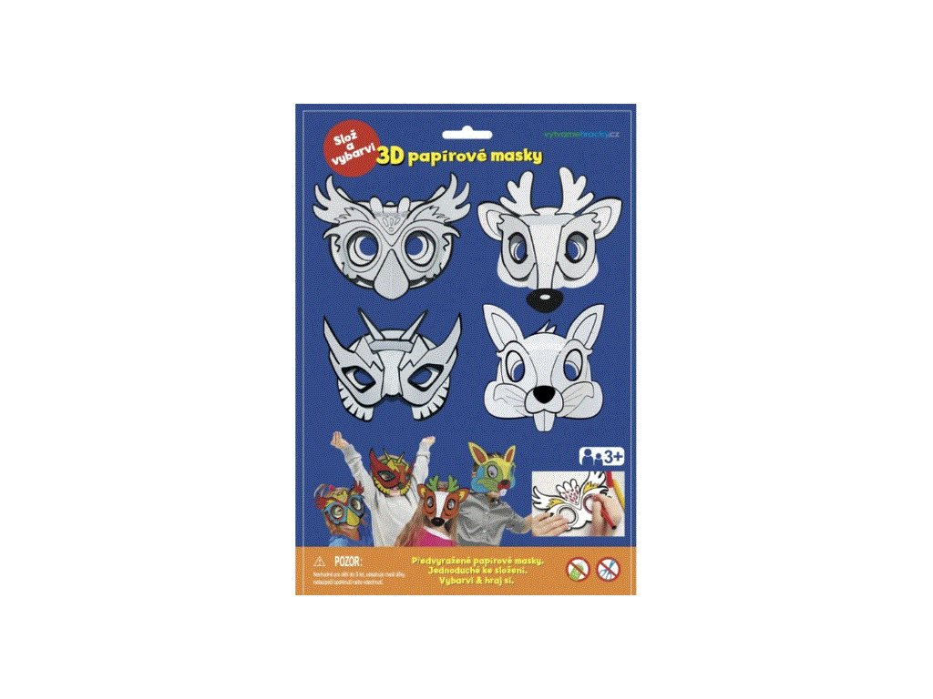 Papírové karnevalové masky - 4 ks - sova, jelen, králíček a superhrdina. Předvyražené masky slož podle obrázkového návodu a vymaluj si. Sada obsahuje 4 různé masky, gumičku, obrázkový návod. Barvy nejsou součástí balení. Masky jsou vyrobeny na kvalitním tvrdém papíru.