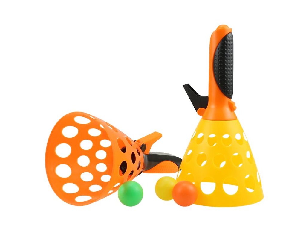 Catch Ball hra – chytání míčku. Vložte balonek do košíčku a zmáčkněte tlačítko. Balónek vystřelí, chyťte jej do košíčku a vystřelte na protihráče. Sada obsahuje 2 košíčky a 3 míčky. Výška košíčku i s madlem 24,5 cm. Šířka a hloubka košíčku: O 12 cm. Velikost míčku: O 3 cm. Rozměry balení: 24,5 x 12 x 12 cm.