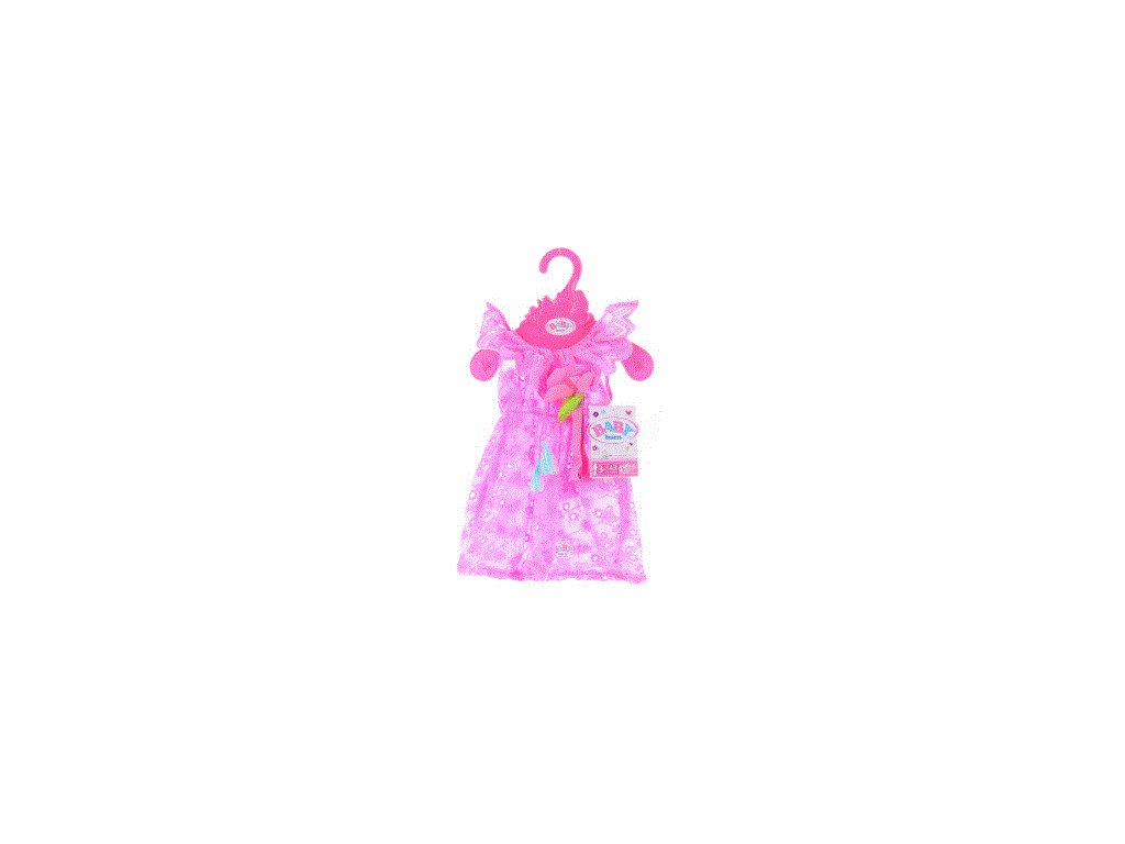 Stylové květinové děti si tento outfit zamilují. Šaty z růžové krajkové látky mají pečlivě propracovaný nabíraný límec. Visí z něj růžové šňůrky s hravými střapci na konci. Nezbytným doplňkem k romantickým k šatičkám je čelenka do vlasů s velkou růžovou květinou.BABY born Květinové šatičky pro panenky velikosti 43 cm. Součástí jsou šatičky a čelenka. Včetně ramínka.