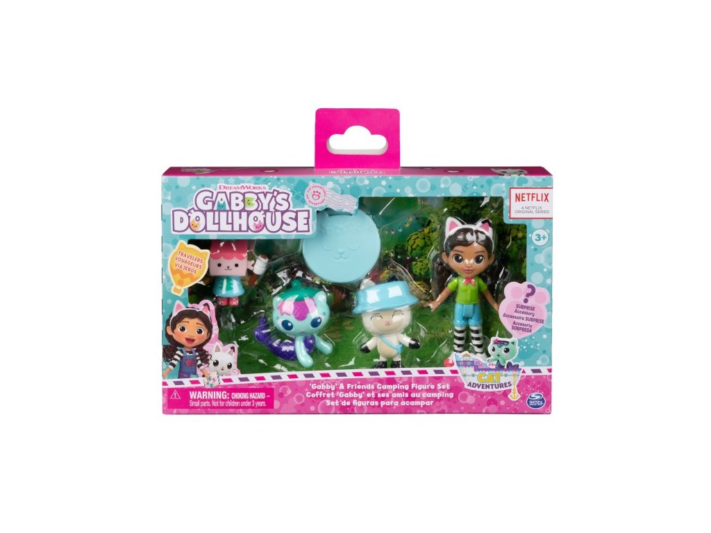 Přineste si domů své oblíbené postavy z Gábinina kouzelného domku v exkluzivní sadě Gábinin kouzelný domek sada figurek kempování! Tato dárková sada je nutností pro fanoušky Gábinina kouzelného domku a obsahuje čtyři sběratelské figurky a krabičku s překvapením uvnitř v podobě doplňku. Přidejte si do své sbírky exkluzivní figurku Gábi s motivem kempování a její kočičí kamarády – Pandy Ťapka, Rybočka a Krabička! Každá figurka má autentické detaily podle seriálu, díky kterým tyto kočkózní postavičky ožívají! Potom si stejně jako Gábi na začátku každé epizody rozbalte svou speciální krabičku s překvapením a objevte záhadný doplněk sady. Co najdete uvnitř? Až to zjistíte, použijte svou představivost a prožijte své vlastní dobrodružství v Gábinině kouzelném domku a jejími kočičkami. Pro ještě více způsobů jak si hrát, přidejte své figurky do Gábinina prrfektního kouzelného domku (prodává se samostatně). A jako poslední překvapení si naskenujte QR kód, který je uvnitř krabičky s překvapením a odemkněte si speciální odměnu v bezplatné aplikaci Gábinin kouzelný domek (k dispozici pro iOS a Android). Pro ještě více způsobů, jak si hrát, hledejte loď Gábininých kočičích kamarádů, Gábinin prrfektní kouzelný domek a tématické pokojíčky, abyste si ještě více vytvořili svět svého kouzelného domku (každý se prodává zvlášť)! Hračky, plyšáci, figurky a herní sady na motiv Gábinina kouzelného domku jsou vzdělávací hračky pro dívky a chlapce a jsou skvělým dárkem pro děti od 3 let, protože pomáhají rozvíjet jejich představivost formou vzrušujícího a kreativního hraní! Zažijte nekonečná dobrodružství s Gábininým kouzelným domkem a Gábininým kouzelným domkem sada figurek kempování!