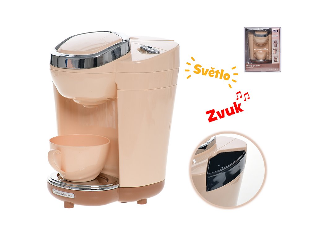 Kávovar se světelnými a zvukovými efekty.