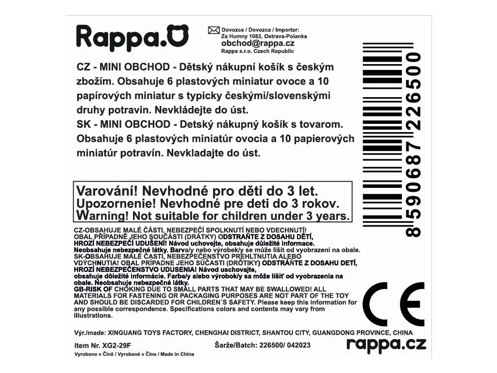 Hra na obchod patří k oblíbeným dětským kratochvílím, a tak výběrem tohoto doplňku jistě nesáhnete vedle! Přináší spoustu zábavy a zároveň podporuje rozvoj dětské představivosti. V našem nákupním košíku najdeš 10 ks papírových atrap potravin českého zboží a 6 ks ovoce. Navíc uvnitř balení najdeš A4 list s úkoly a ceníkem. Tak popadní dětský nákupní košík do ruky a hurá na nákupy! Na speciální podstránce rappa.cz/miniobchod si zákazníci mohou navíc ZDARMA stáhnout další miniatury potravin a vytisknout naučné úkoly o nakupování.
