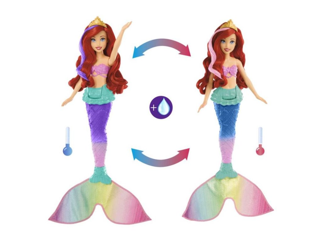 Plavající malá mořská víla Ariel má ocasní ploutev z měkkého materiálu v krásných barvách a po zmáčknutí boků panenky se celý ocas začne pohybovat jako při plavání! Vlasy a ocas panenky také mění barvu díky vodě a součástí balení jsou 4 doplňky pro ještě větší zábavu při hraní a vyprávění příběhů. Panenka neumí samostatně stát nebo plavat. Barvy a vzhled výrobku se mohou lišit. Věk 3+.