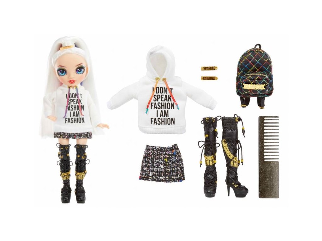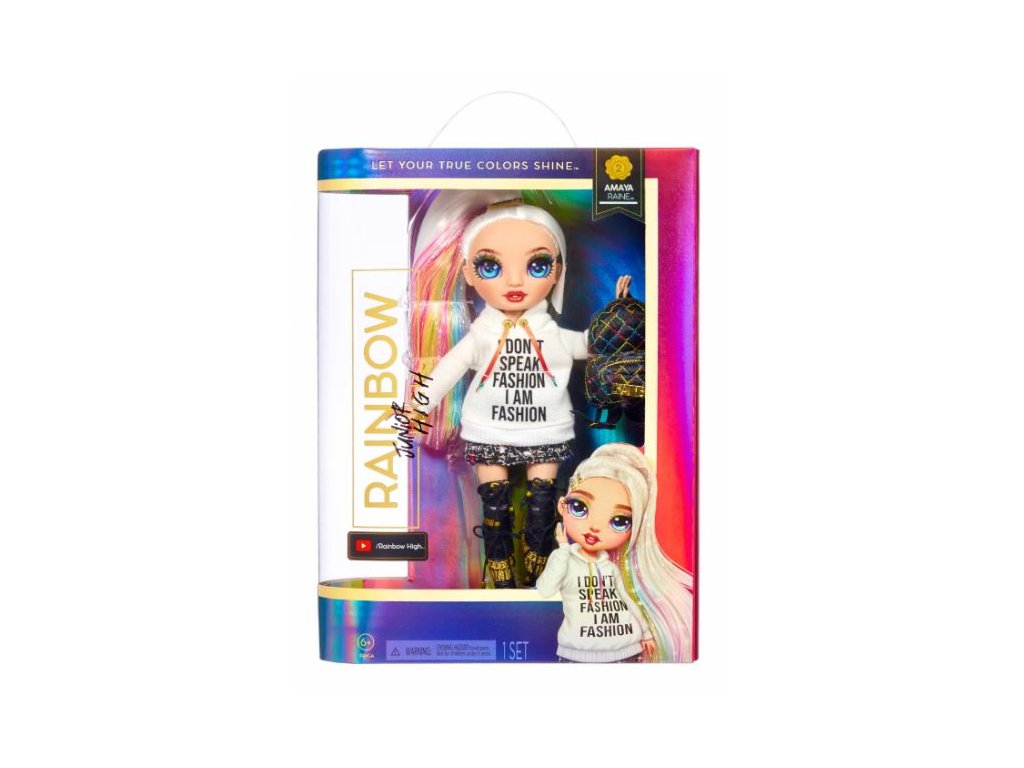 Potkej se s mladšími verzemi oblíbených Rainbow High Fashion panenek z druhé série! Bella, Stella, Karma, River, Krystal a Amaya mají každá svůj vlastní příběh o tom, jak objevily svou vášeň pro kreativitu, než začaly chodit na školu Rainbow High. Každá z panenek je krásná, stylová a pestrá jako původní panenka v plné velikosti.Obsah balení:• 1 ze 6 okouzlujících Junior fashion panenek v menší velikosti s pohyblivými klouby, která má mladší výraz obličeje a dlouhé česatelné vlasy• unikátní kompletní outfit v charakteristické barvě • základní školní doplňky, např. kvalitní měkký batoh• hřeben na vlasy a další doplňky• stojan pro panenkuVelikost panenky: cca 22 cm.
