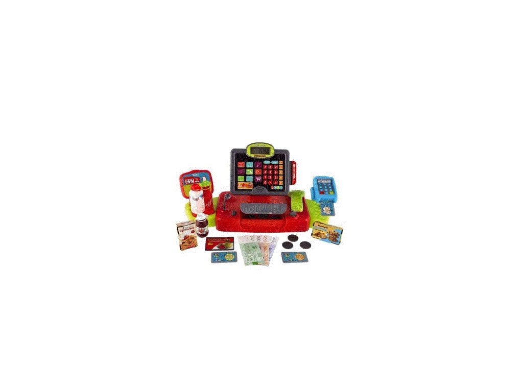 Dětská elektronická pokladna s doplňky pro každý správný obchod s potravinami! Součástí je čtečka se světlem a zvukem, makety bankovek a mincí, slot pro kreditní kartu, funkční kalkulačka, makety potravin i váha na ovoce a zeleninu. U nás v potravinách si vyberete!