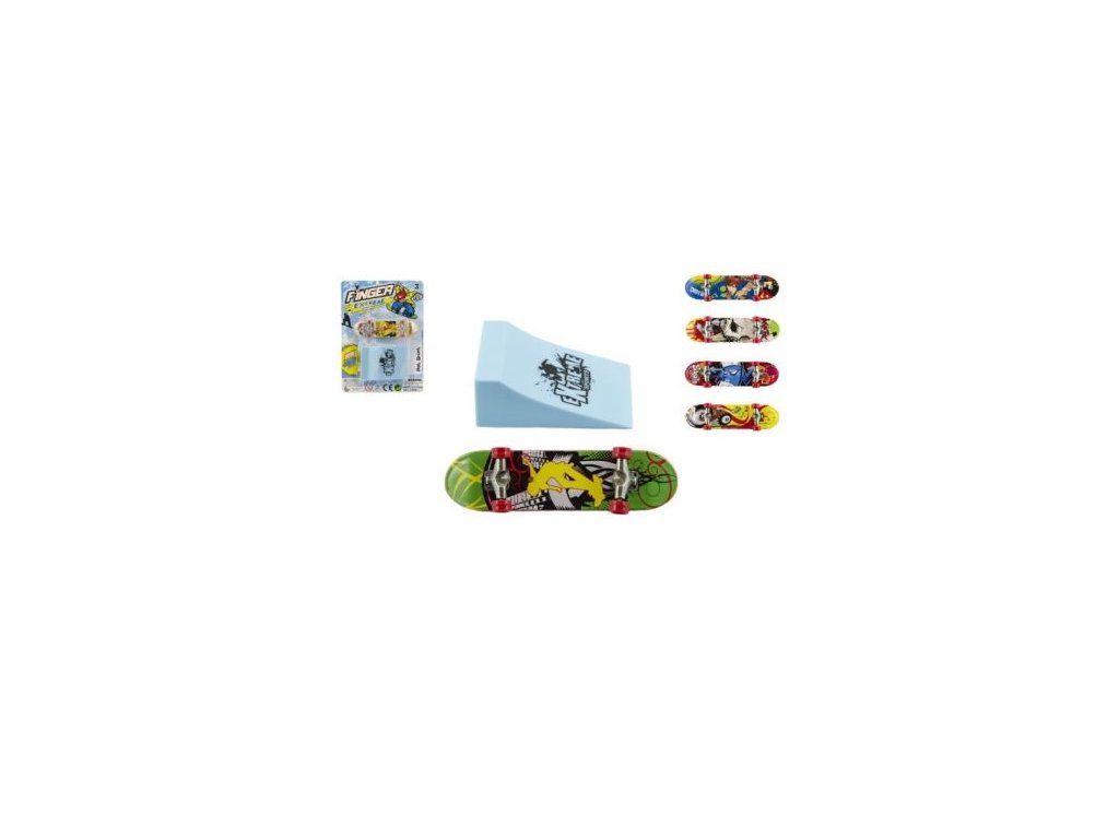 Skateboard prstový s rampou plast 10cm asst mix barev na kartě