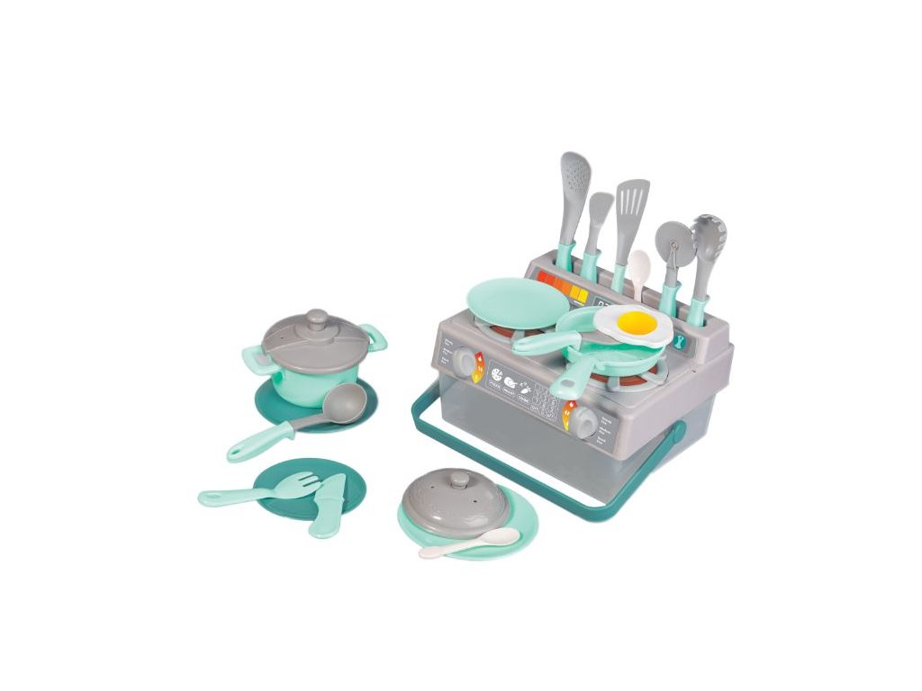 Báječná přenosná kuchyňská sada obsahuje vařič, hrnec, příbory a spoustu jiných věcí potřebných v kuchyni. To vše navíc v paktickém parádním boxu! Vše vyrobeno z kvalitníh plastu.
