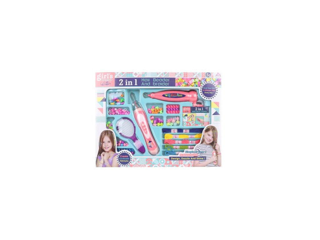 Sada na vlasy. Sada obsahuje hřeben, zaplétač, korálky a další doplňky. Rozměry balení 43 x 32 x 6 cm. Vek 5+