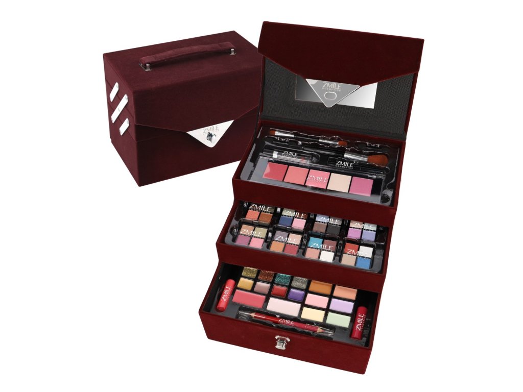 Kosmetický kufřík sametový Beauty Case Velvety – sametový tmavě vínový – celkem 74 ks příslušenství. . Obsahuje 32× očními stíny ve 4 kompaktních kazetách ,5× tvářenku, 3× stíny na obočí, 1xvosk na obočí, 4× krémové oční stíny,4× krém se třpytkami, 2× základní oční stíny, 8× korektor, 2× lesk na rty, 1× rtěnku, 1× řasenku, 1× oboustrannou tužku na oči, 1× oboustrannou tužku na rty, 1× štětec na tvářenku, 1× oboustranný štětec na stíny, 4× oboustranný aplikátor, 1× integrované zrcátko. Dermatologicky testováno, vyhovuje přísným normám EU.
