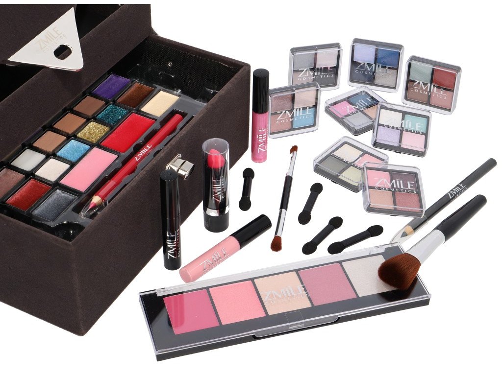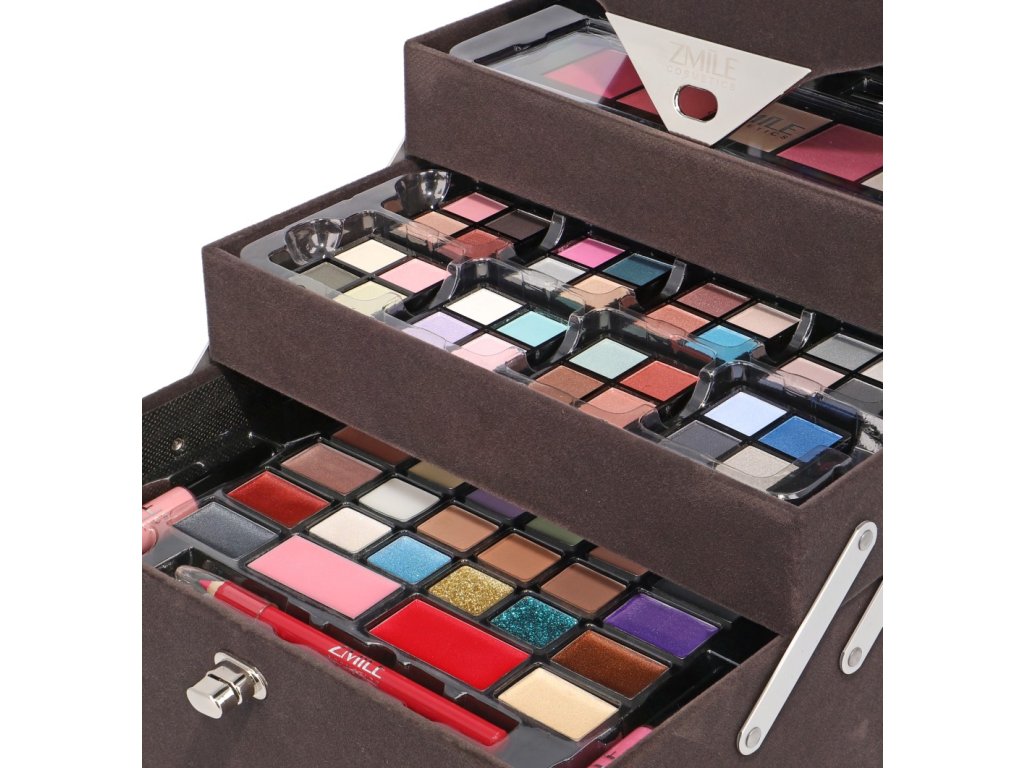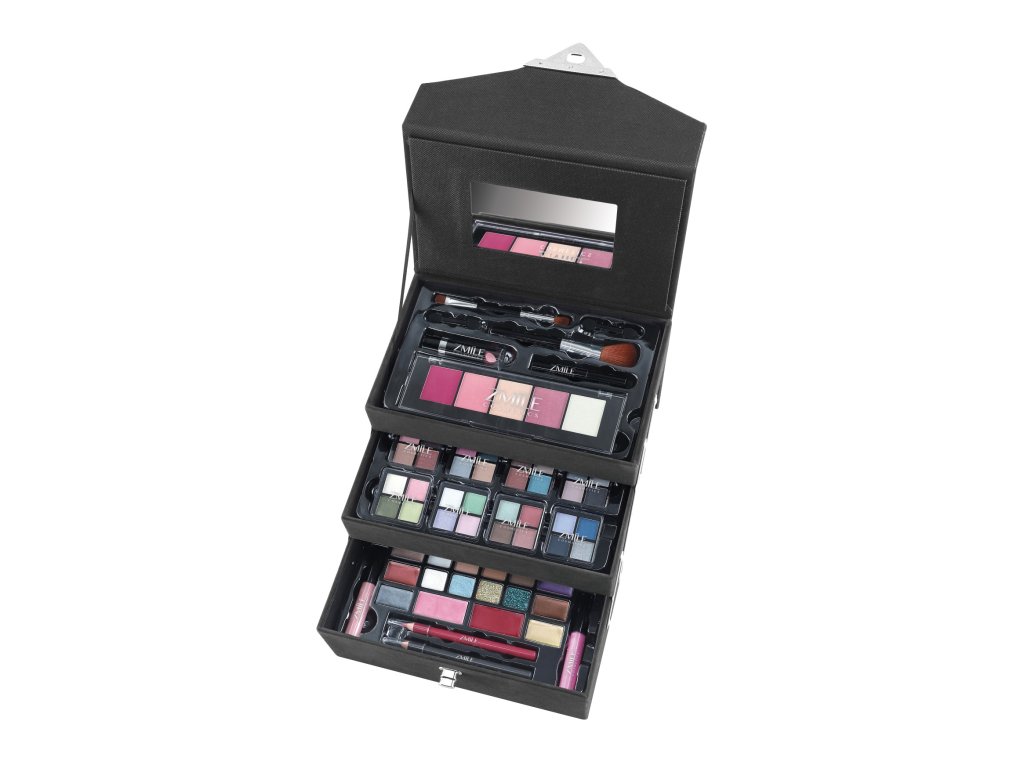 Kosmetický rozkládací kufřík ‚Beauty Case 'Velvety‘ tmavě šedý – limitovaná edice – celkem 72 ks příslušenství. Obsahuje 32 ks očních stínů 3× tvářenka, 2xoční linka, 3xbarva na obočí, 1xvosk na obočí, 8× krémové oční stíny, 4xtřpytkový krém na tělo, 2xkrémová rtěnka, 4xkorektor, 2xlesk na rty, 1× rtěnka, 1xřasenk, 1× tužka na oči, 1× tužka na rty, 1xštětec, 5× oboustranný aplikátor a integrované zrcátko. Dermatologicky testováno, vyhovuje přísným normám EU.