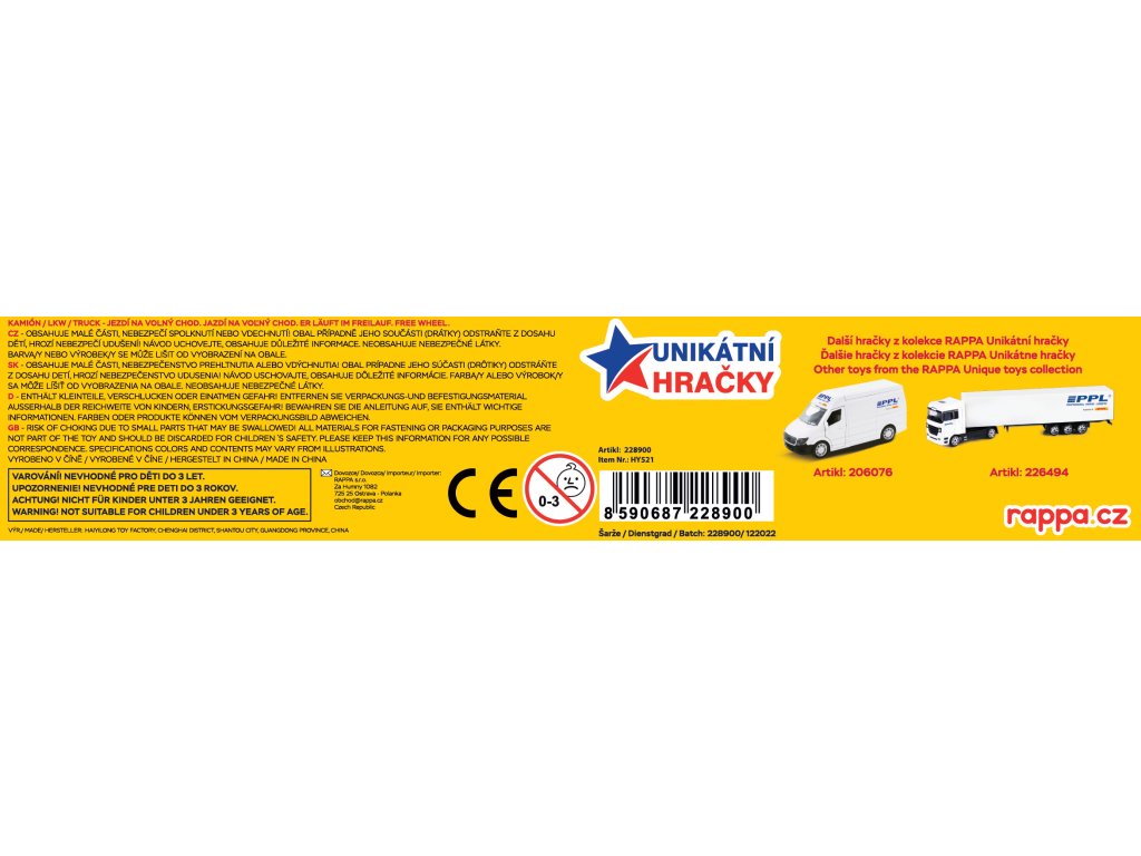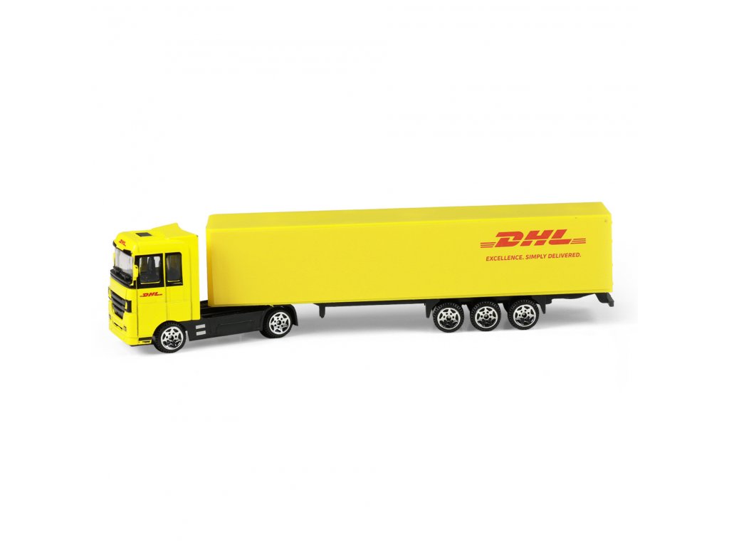 Pořiď si tento originální kamion s logem přepravní společnosti DHL a rozšiř si tímto svůj vozový park! Model kamionu 1:87 je vyroben z kovu, přívěs je vyroben z PVC. Model je dlouhý cca 20 cm a jezdí na volný chod. Tahle unikátní hračka nadchne všechny kluky, tak obohať svou sbírku o tento parádní kousek!