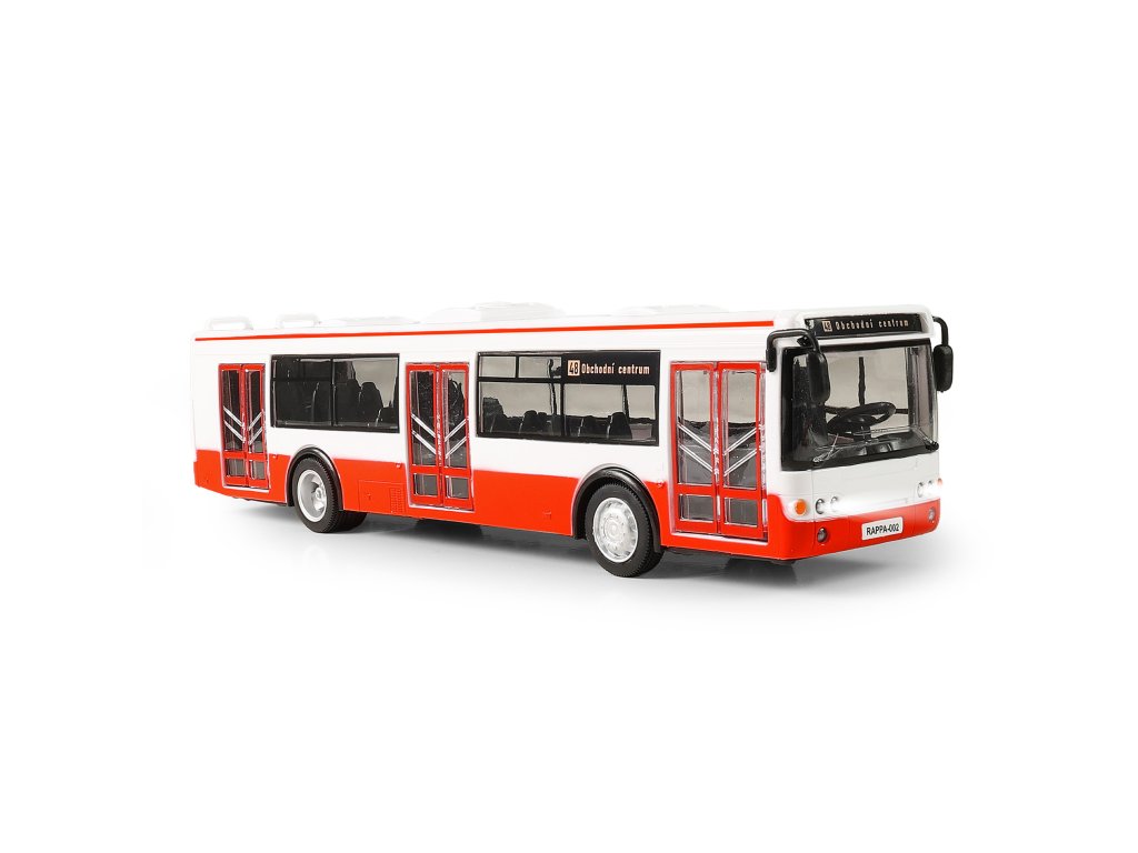Originální autobus, který oznamuje zastávky v českém jazyce, je rozhodně ten pravý dárek pro vaši jízdu! Vaše děti si ho zamilují! Všechny dveře, lze manuálně otevřít a zavírají se pomocí posuvníků umístěných ve spodní části vozu. Při otevření předních dveří se ozve hlášení zastávky, při zavření zahlásí příští zastávku a navíc blikají přední světla. Po zatlačení na přední část střechy vydává autobus zvuk motoru. Je vyroben z plastu, jeho délka je 36 cm a vyžaduje použití 3 ks baterií LR44/AG13, které jsou jeho součástí. Autobus jezdí na zpětný chod a hlásí celkem 7 zastávek česky. Tato unikátní hračka nadchne všechny kluky i holky!