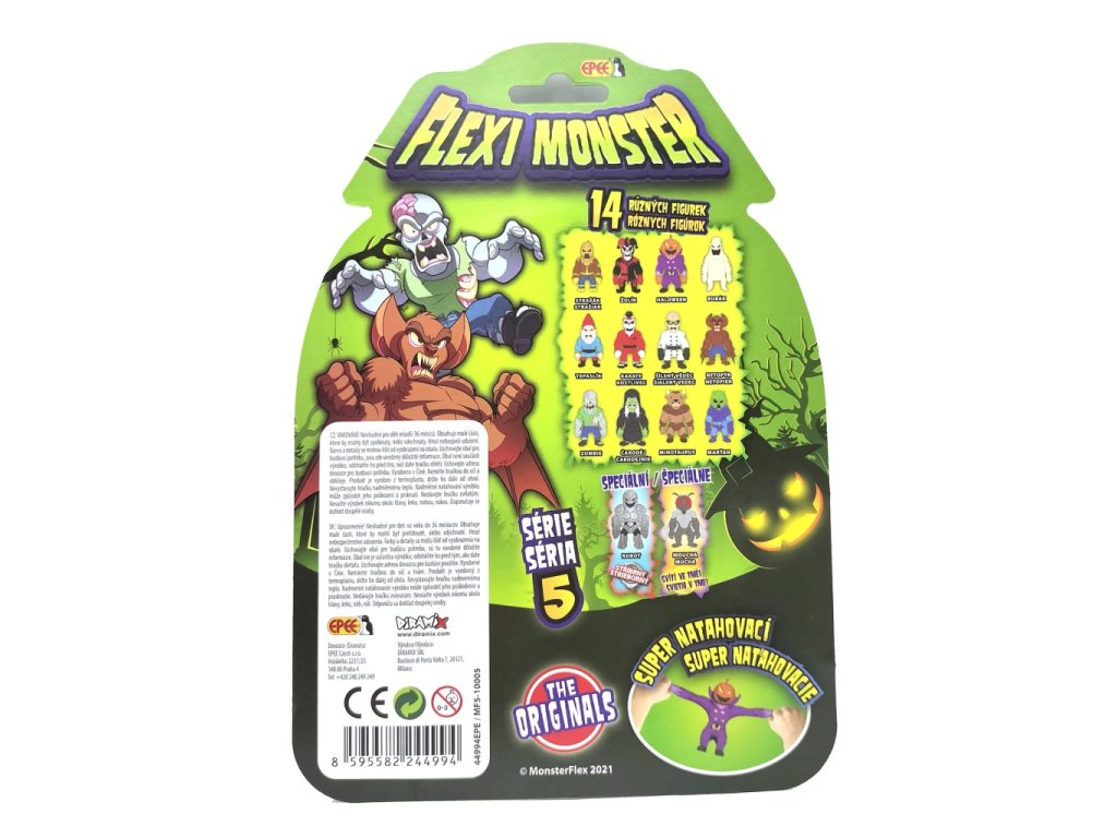 Flexi Monster série 5 je tady! Na výběr máte ze 14ti různých strašidelných figurek. Natahujte je, roztahujte je, mačkejte je, proplétejte jim končetiny. Jsou odporní, jsou strašidelní, ale rozhodně vás nebudou nudit. Uvidíte, s těmito měkkými příšerkami si užijete spoustu zábavy. Pozor! Kolekce obsahuje dvě speciální figurky (stříbrného Robota a ve tmě svítící Mouchu), Assort.: 14. Pro děti od 3 let.