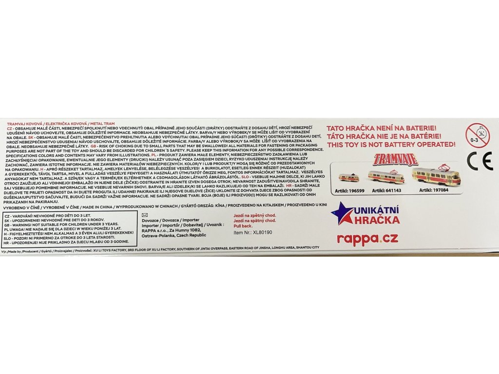 Originální kovová tramvaj žluté barvy, která jezdí na zpětný chod. Délka tramvaje je 20 cm. Dveře lze manuálně otevřít a zavřít pomocí páčky umístěné pod dveřmi vozu. Tato naše unikátní hračka je skvělým dárkem nejen pro vaše děti.
