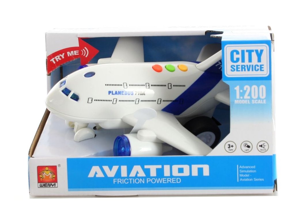 Letadlo na baterie se světlem a zvukem. Napájení 3x AG13 (jsou součástí balení). Rozměr letadla cca 20 x 17 cm. Rozměry balení cca 21,5 x 15 x 13 cm. Věk 3+