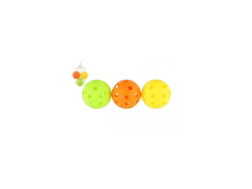 Sada florbalových míčků tří barev, které se budou hodit nejen na každý florbalový zápas ale také na další míčové sporty.