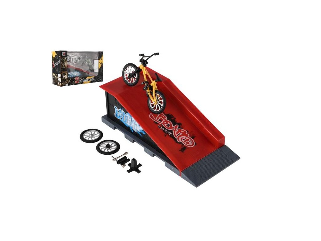 Skatepark - kolo prstové šroubovací s rampou plast 10cm s doplňky 3 barvy v krabici 28x18x11cm