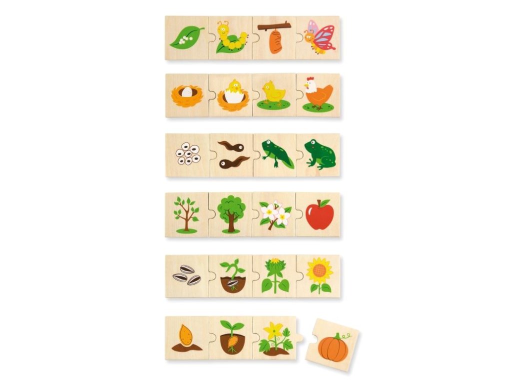 Dřevěné puzzle. Balení obsahuje 24 dřevěných puzzlí s motivy evoluce (příroda). Rozměry balení cca 20,5 x 19,5 x 4,5 cm. Věk 18m+