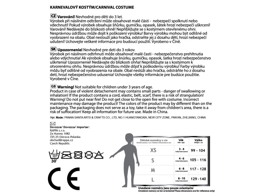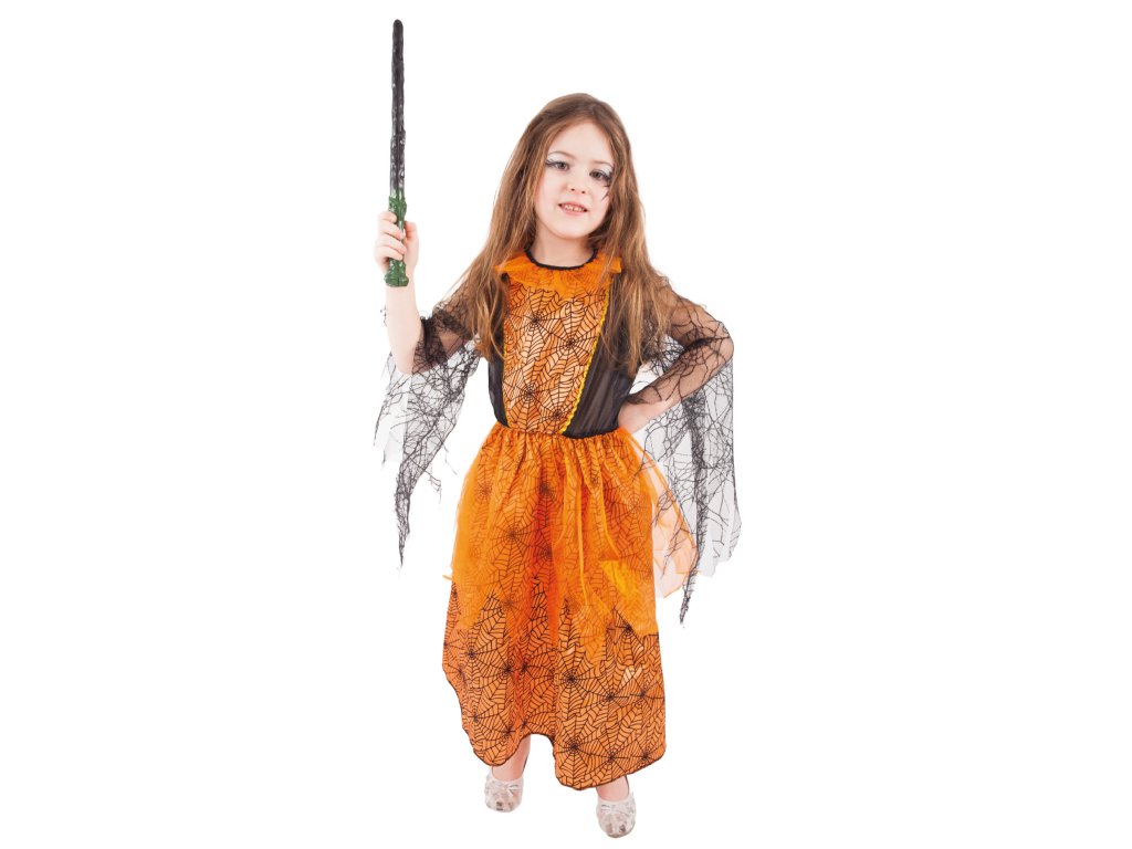 Magický karnevalový kostým pro malé čarodějnice! Kostým černo-oranžové barvy ve velikosti S je určen pro holčičky ve věkovém rozmezí 4-6 let (110-116 cm). Šaty jsou dekorovány pavučinkou. S tímto úchvatným kostýmem se zaručeně staneš hvězdou karnevalu i Halloweenu! Nejen letos je potřeba myslet EKO-nomicky i EKO-logicky! EKO-balení je vhodné zejména pro e-shopy kde zákazník nakupuje dle fotografie a není třeba velkého balení s věšákem. EKO-logicky – na balení bylo použito méně plastu a dalších materiálů. Jedná se o malý transparentní obal s fotografií. EKO-nomicky –EKO-obal zabere jen polovinu místa – šetřete skladová místa s námi!