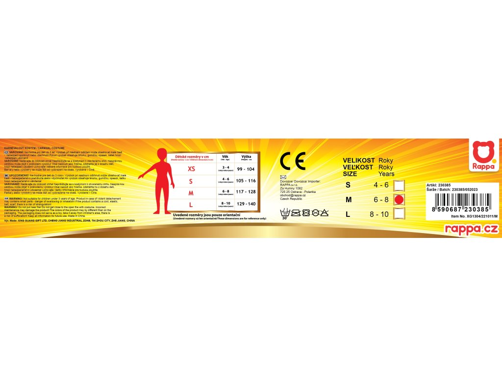 DĚTSKÝ KOSTÝM POPELÁŘ - ČESKÝ POTISK (M)