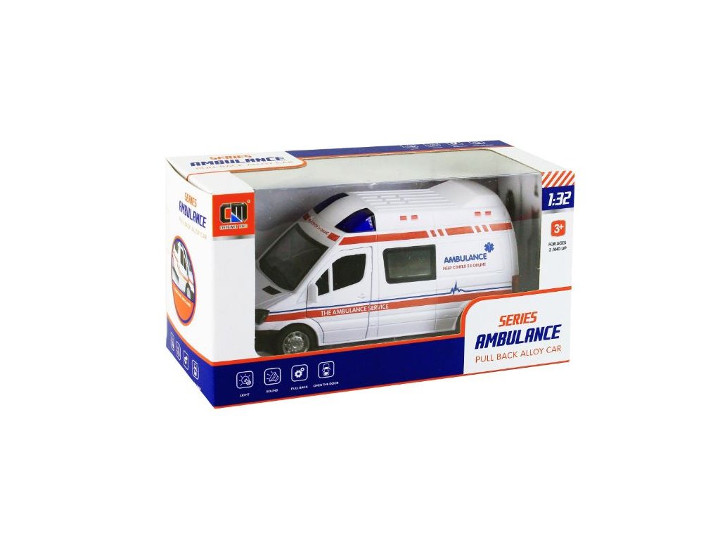 KOVOVÁ SANITKA - AUTO SE ZVUKEM A SVĚTLEM