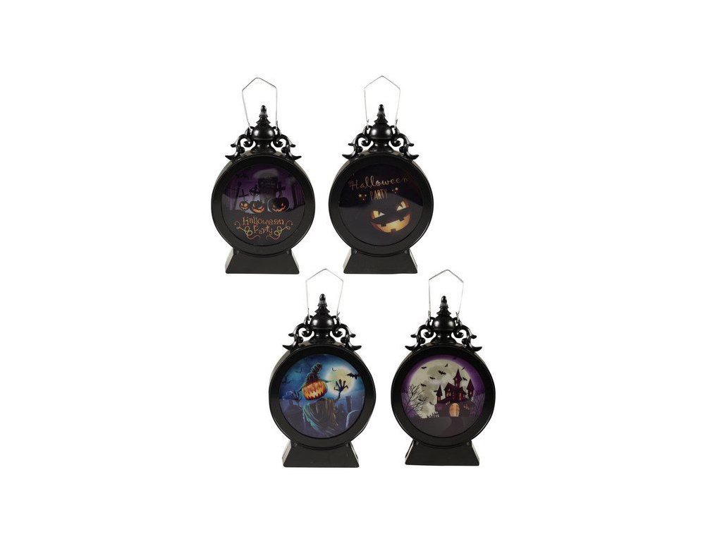 Halloweenské svítidlo na tu pravou Halloween párty! Plastová lampička je funkční na 3 baterie typu LR1130 (baterie jsou součástí balení). Stačí jen přepnout přepínač ve spodní části. Lampička po zapnutí bliká různými barvami, které se samy přepínají. Velikost lampičky je cca 13 cm. Různé druhy - zasíláme dle skladových zásob