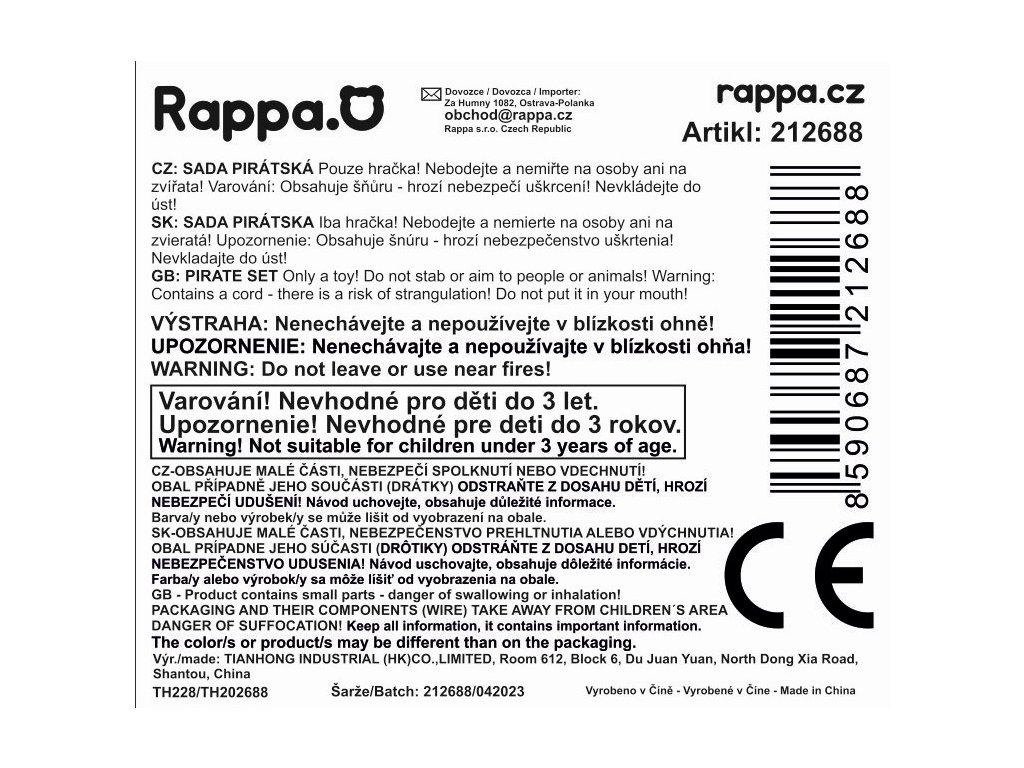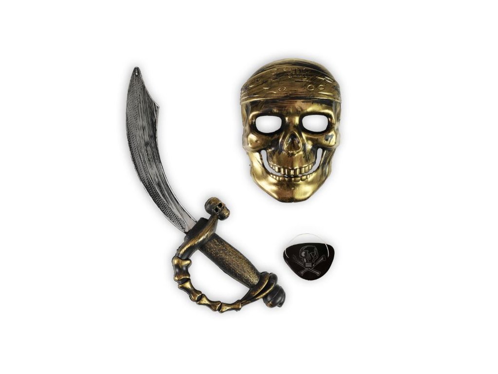 Exkluzivní sada pro všechny malé piráty! Tento parádní set obsahuje bronzovou masku na gumičku, klapku na oko a meč s bronzovou rukojetí. Tyto super doplňky jsou ideální k pirátskému kostýmu! Vše je vyrobeno z PVC.