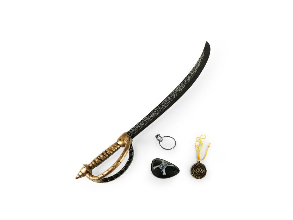 Senzační set pro malé piráty! Balení obsahuje vzorovaný meč s úchvatnou rukojetí, pirátskou klapku na oči, náhrdelník s motivem lebky a stříbrný kroužek do ucha. Vše je vyrobeno z plastu. Staň se opravdickým pirátem díky těmto senzačním doplňkům!